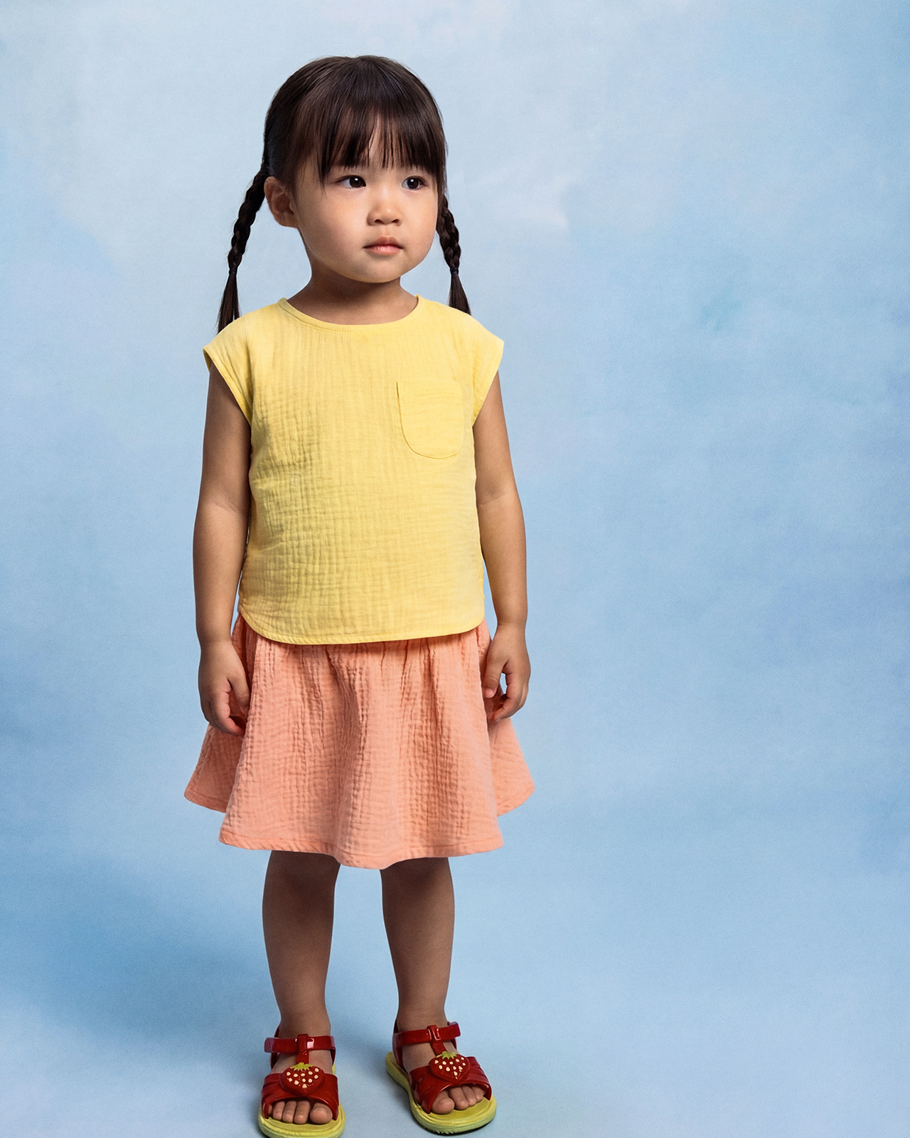 Кармашек на груди вмещает конфеты от друзей на детской площадке, а пуговки сзади служат дополнительным акцентом.