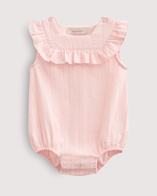 Воздушное хлопковое боди похоже на нежнейший полевой цветочек. Нарядная рюша украшает боди от плечика до плечика.