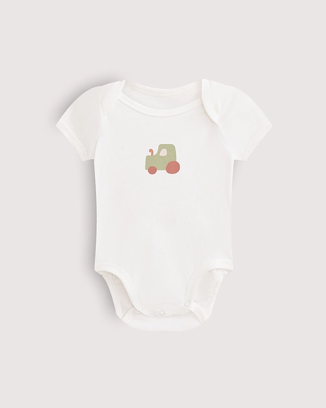 Короткие рукава и запаховая линия плеча позволяют малышу свободно двигать ручками и играть с машинками.