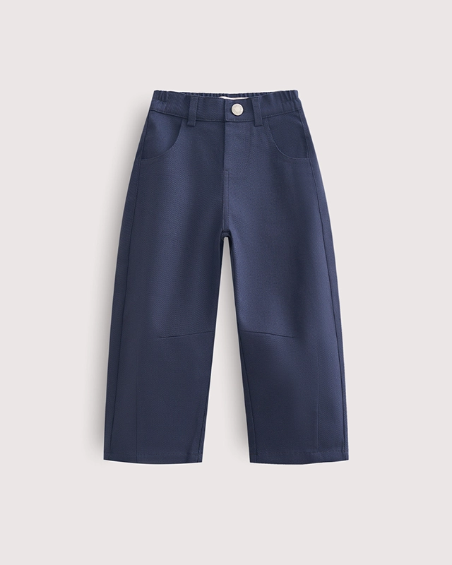 Брюки-бананы из плотного хлопка добавляют образу винтажные нотки и особенный комфорт. Дело в легендарном крое и вытачках, которые делают движения свободными и позволяют ребенку активно играть.