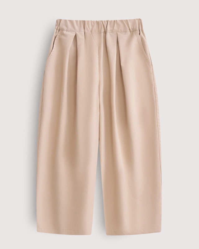 Секрет скрывается в свободном крое — складки спереди и сужающиеся к щиколоткам штанины создают дополнительный объем. Еще одна малюсенькая деталь — эластичная резинка на поясе. И еще одна — вместительные карманы, которые прячутся по бокам и хранят все маленькие сокровища. Ну, почти.