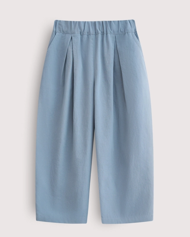 Секрет скрывается в свободном крое — складки спереди и сужающиеся к щиколоткам штанины создают дополнительный объем. Еще одна малюсенькая деталь — эластичная резинка на поясе. И еще одна — вместительные карманы, которые прячутся по бокам и хранят все маленькие сокровища. Ну, почти.