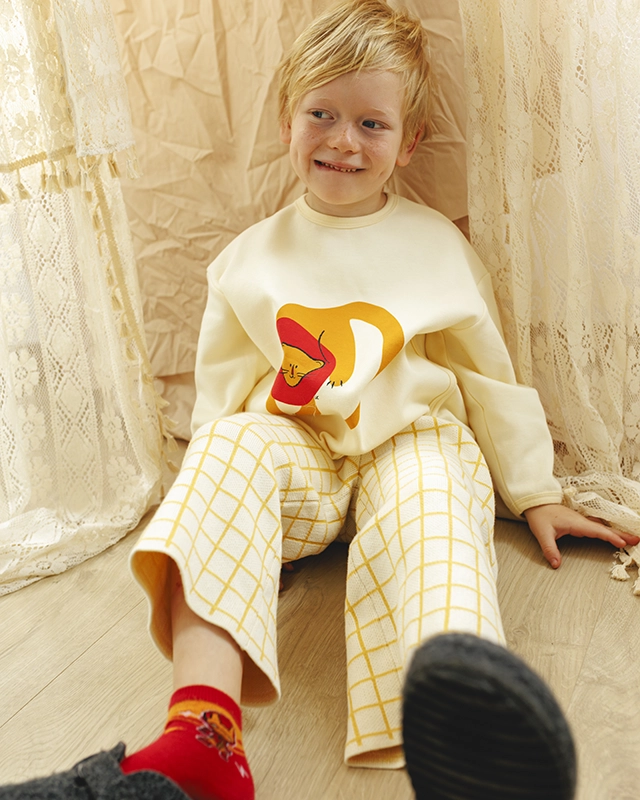 Вязаные штанишки бунтуют против повседневности и плохого настроения, рисуют яркую геометрию и улыбки на лицах мальчишек и девчонок.