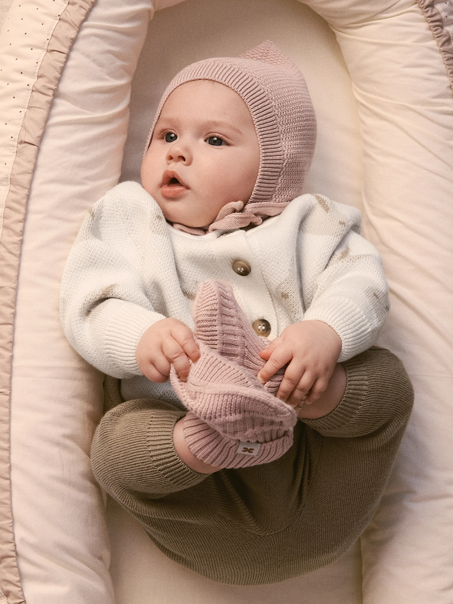 Шапочка выполнена из 100% хлопка, имеющего сертификат OEKO-tex 100, внутри подкладка из нежнейшего 100% хлопка, также сертифицированного согласно стандарту OEKO-tex 100.
