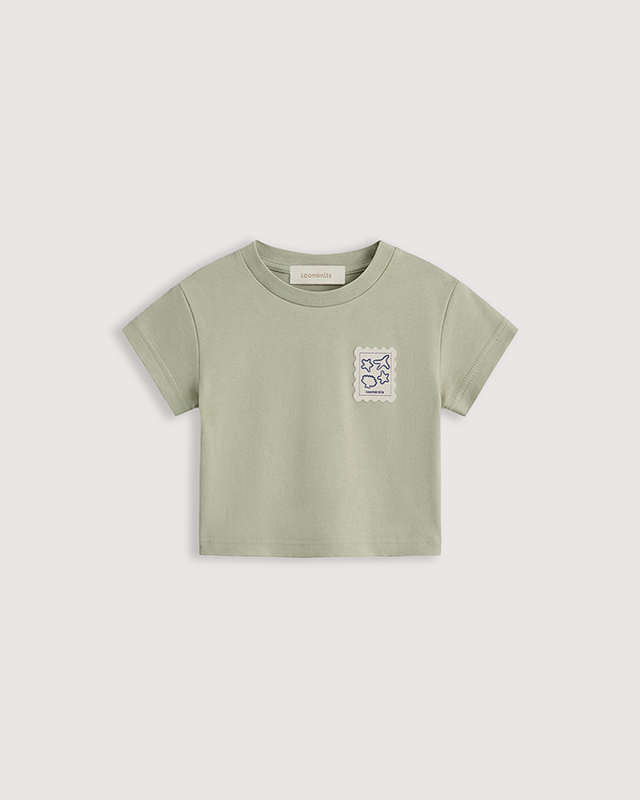 Принт в виде почтовой марки по-дружески напоминает — все важные моменты лета можно сохранить на память.