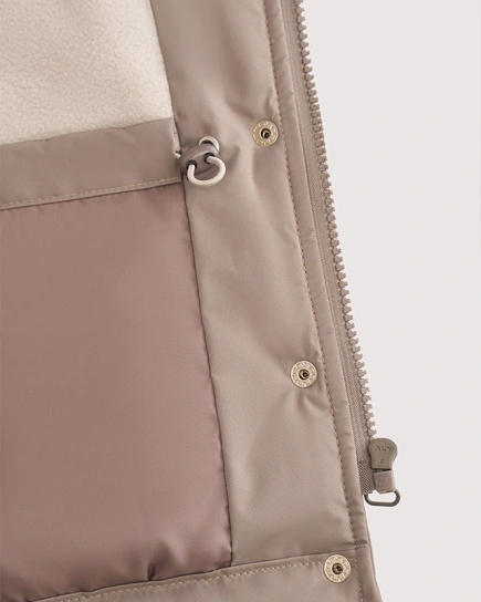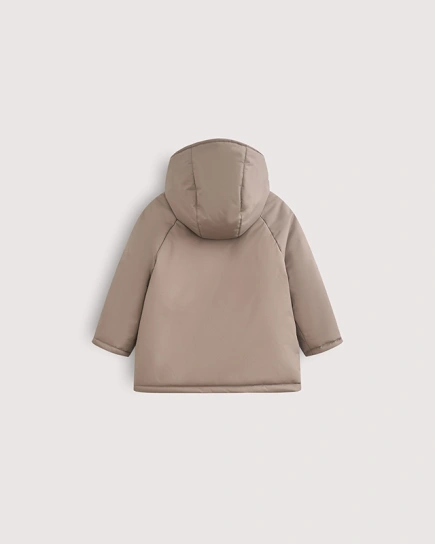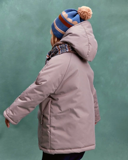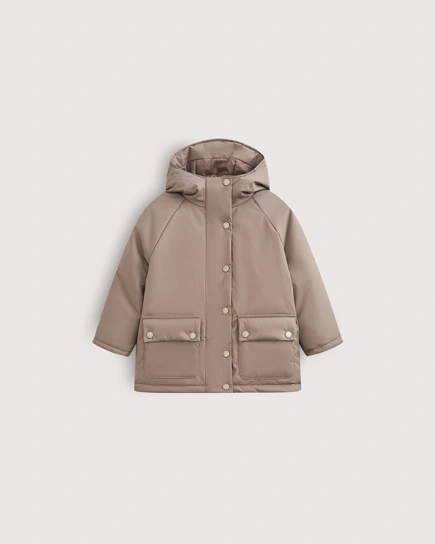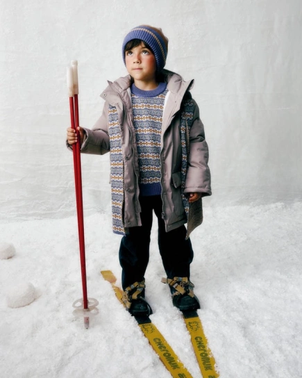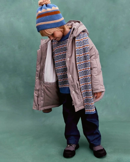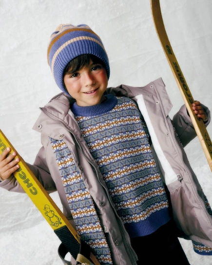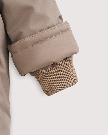 Прямой крой, вязаная резинка на манжетах и горловине, благородные оттенки и нотка размеренности, которая замедляет вечный двигатель малышей. Тихая роскошь, как булка с корицей и какао.