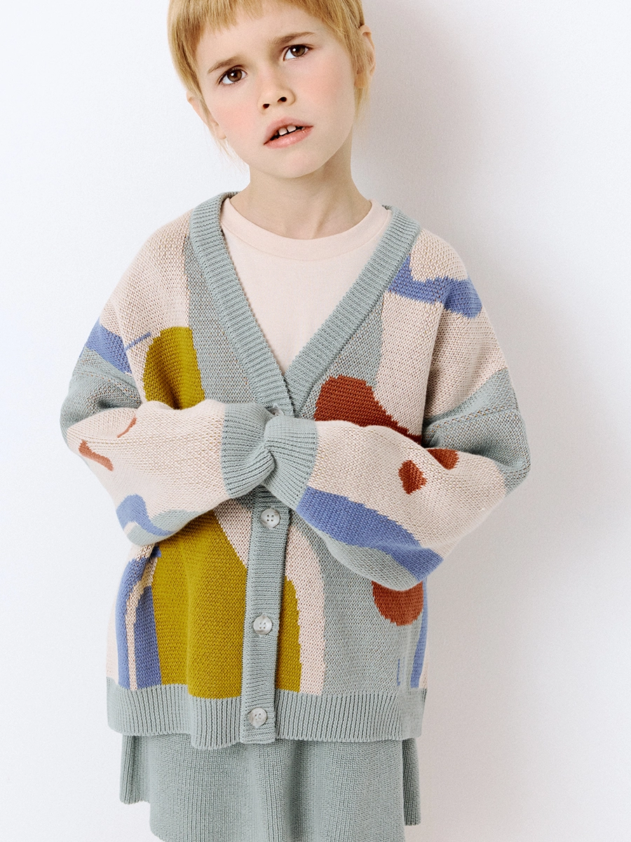 Вязаный кардиган с абстрактным принтом добавляет ярких красок в серость самых обычных будней.