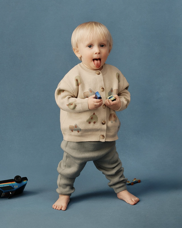 Когда машинок становится слишком много, все они переезжают на вязаный кардиган.