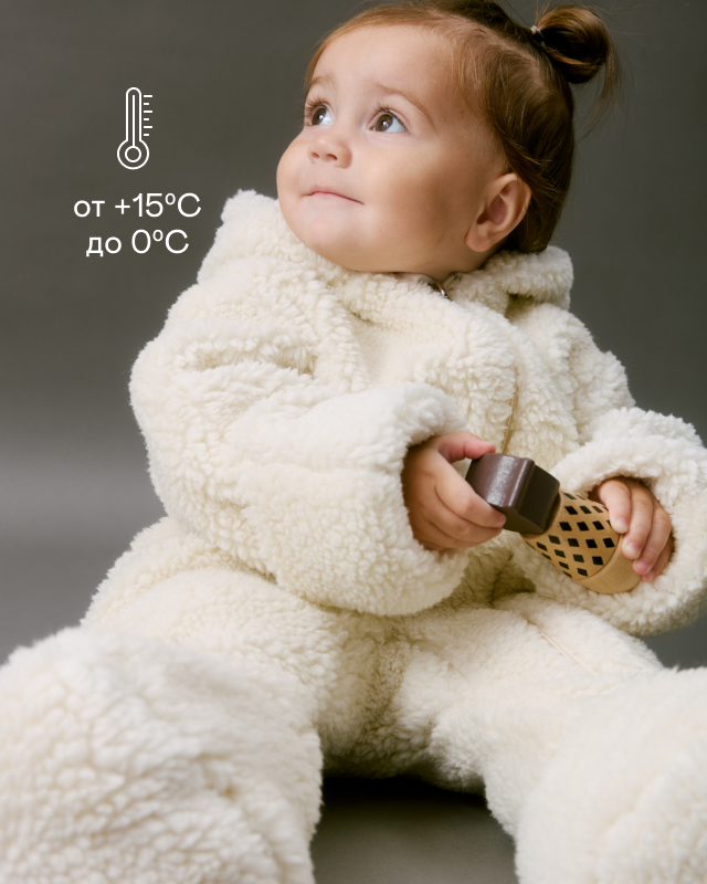 Детский утепленный комбинезон с подкладом из 100% хлопка выполнен из шерпы. Это именно тот материал, из которого loomknits ни один сезон производит функциональные и стильные костюмы для прогулок. Помимо теплого комбинезона, наличия ножек и свободного кроя мы добавили одну маленькую деталь — закрыли замочек на молнии тканью, чтобы малыш не испытывал дискомфорта в игре.