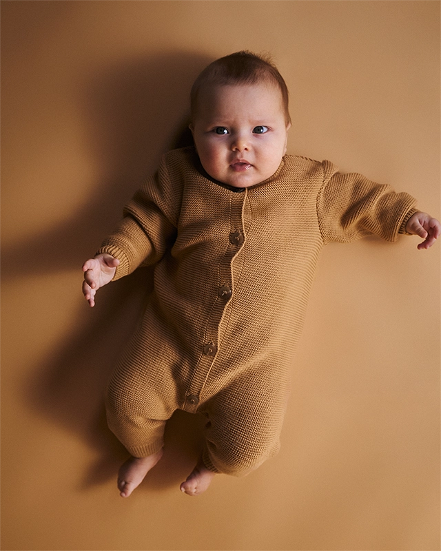 Вязаная резинка на горловине, манжетах и штанинах аккуратно повторяет контур малыша, а ее эластичность позволяет комфортно двигаться, не натирая и не передавливая кожу.