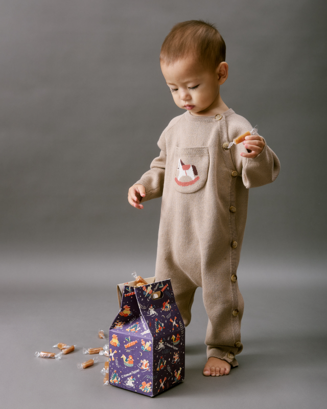 Полуприлегающий крой комфортно сидит по фигуре. Эластичная вязаная резиночка на горловине, манжетах и штанишках позволяет малышу комфортно ворочаться и ползать под елку за подарками. Боковая планка помогает маме быстро переодевать малыша, не отвлекая его от загадывания первых желаний.