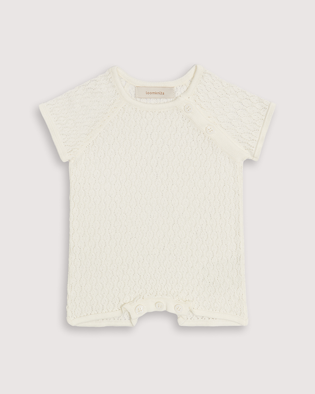 Вязаный комбинезон напоминает изящное кружево, которое связано из самых трогательных мгновений детства.