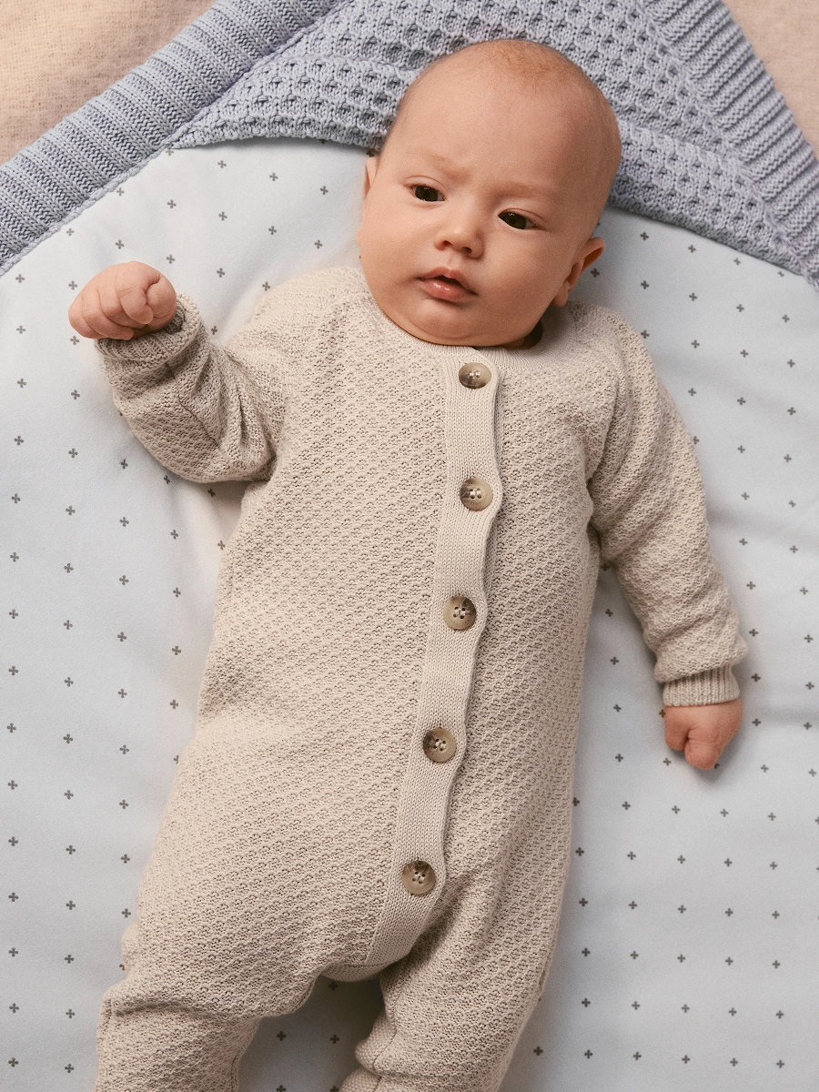Первые сны малыша будут спокойными и нежными — как вязаный комбинезон.
