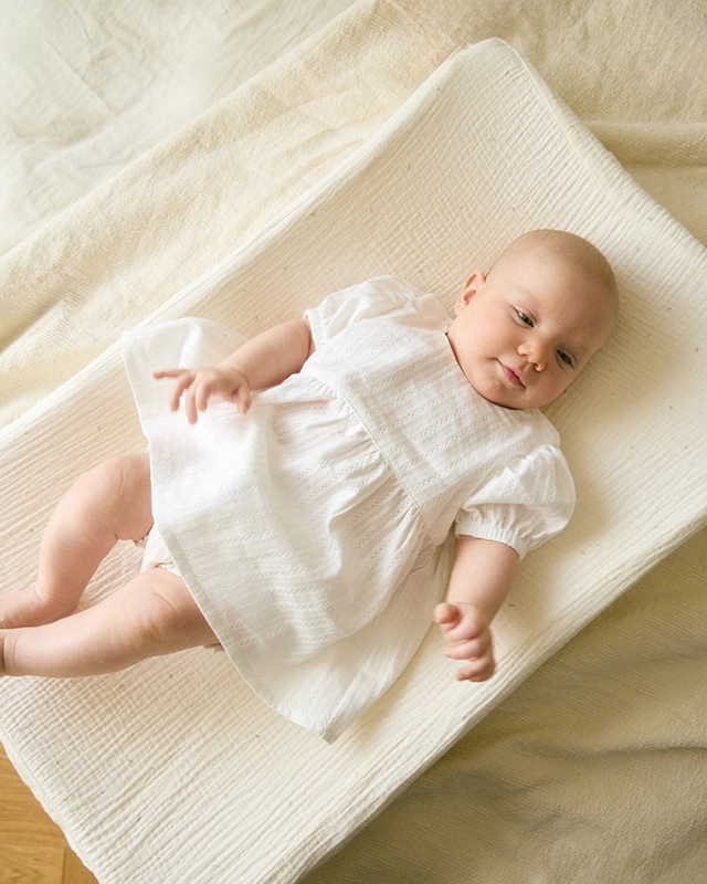 Под платьем прячутся просторные блумеры с эластичными резиночками и пространством под подгузник.