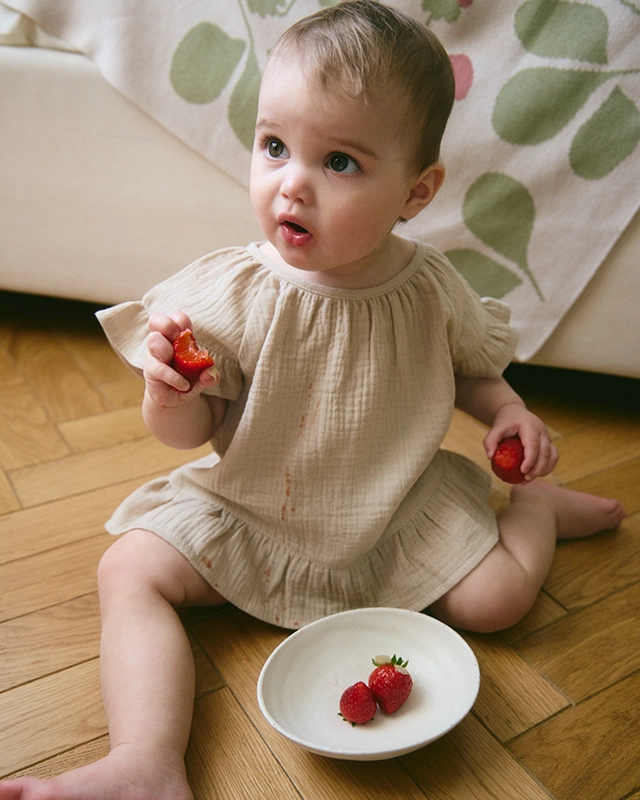 Невесомый муслиновый комплект создан для прогулок под солнцем в +25 °C и первых поездок к морю.