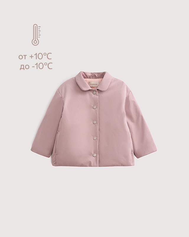 Демисезонная куртка в пудровом цвете выполнена из плащевой ткани, поэтому не спешите домой, если накрапывает мелкий дождик. Такая куртка легко украсит пасмурный день. Ребенок будет ощущать себя красиво и уютно благодаря мягкому флису внутри. Это изделие создано в минималистичном дизайне, что выгодно подчеркивает качество кроя, отложного воротничка и кнопок.
