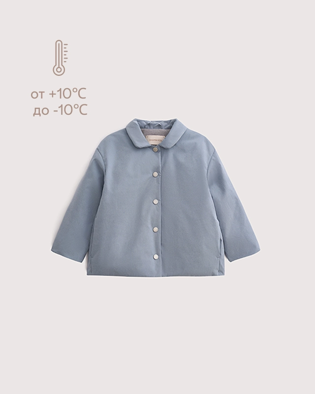 Демисезонная куртка в цвете деним выполнена из плащевой ткани, поэтому не спешите домой, если накрапывает мелкий дождик. Такая куртка легко украсит пасмурный день. Ребенок будет ощущать себя красиво и уютно благодаря мягкому флису внутри. Это изделие создано в минималистичном дизайне, что выгодно подчеркивает качество кроя, отложного воротничка и кнопок.