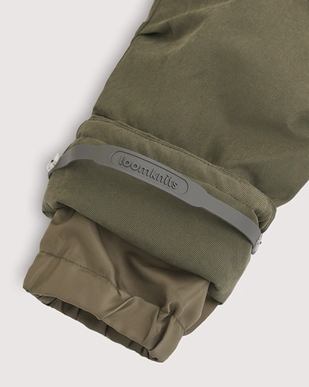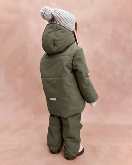 Капюшон надежно фиксируется к куртке липучками, а снизу куртки расположены фиксаторы. В карманы помещается еще одна пара варежек или любимая шапка.