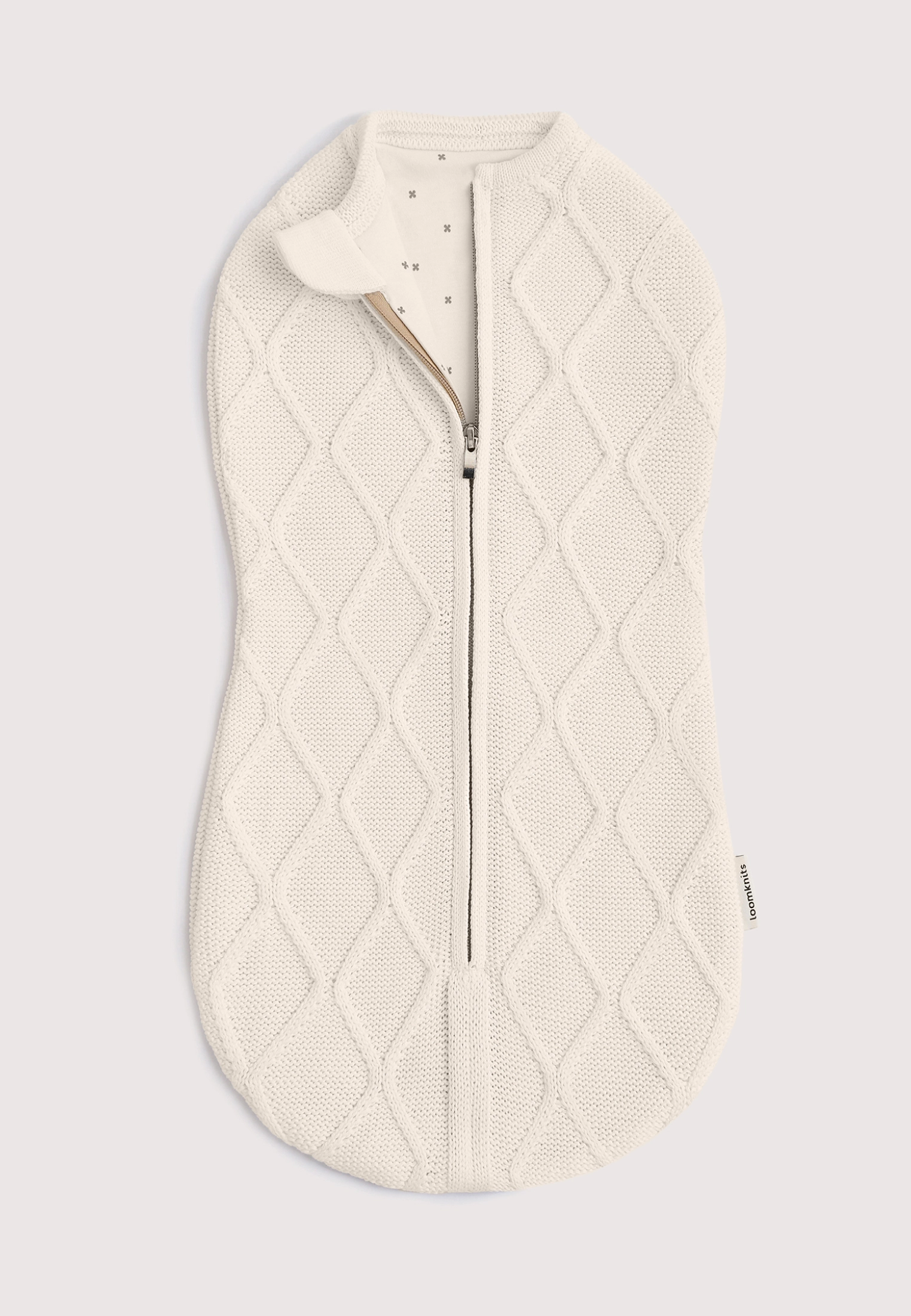 Вязаный кокон буквально обнимает малыша заботой и нежностью.