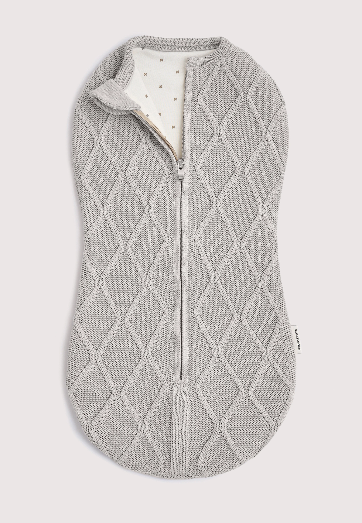 Кокон вязаный пеленальный Oliver с косами Светло-серый