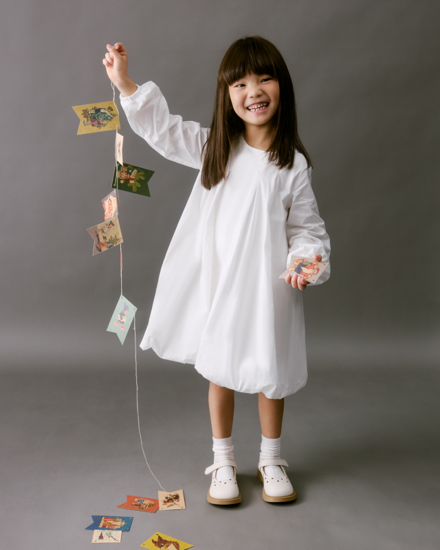 Однотонное лаконичное платье-баллон — находка для новогоднего утренника. Благодаря минималистичному дизайну, платье легко стилизовать воротничком, мишурой и мамиными аксессуарами.