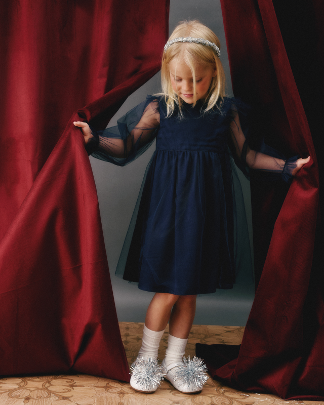 Это платье словно придумано зимой — мерцающей от снежинок и шепчущей сказки о новогодних чудесах. Оно готово в миг стать нарядом для Снежной Королевы, льдинки, снежинки или принцессы-чародейки.