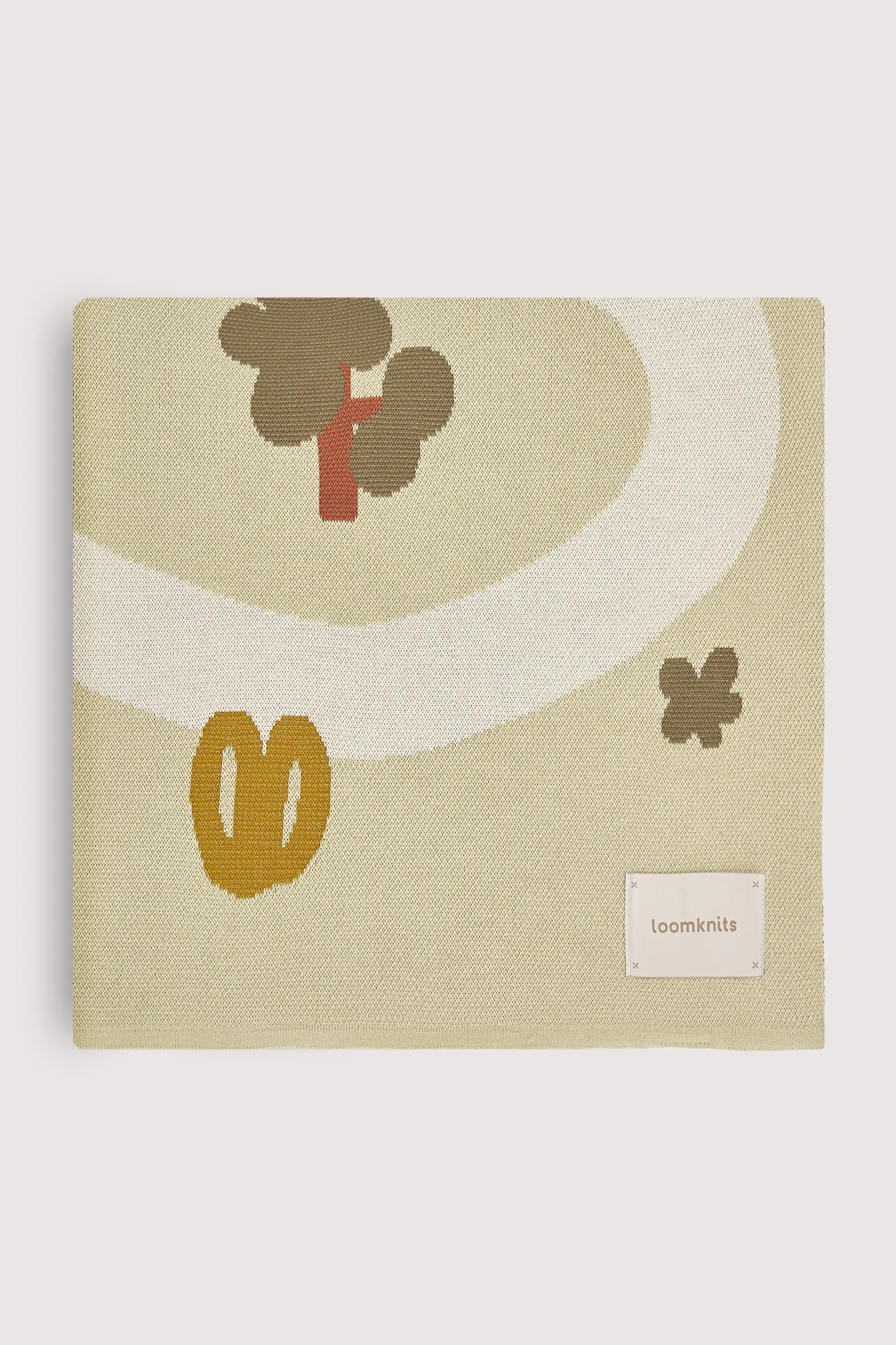 Веселая ферма с яркими принтами прямо на вязаном пледе.