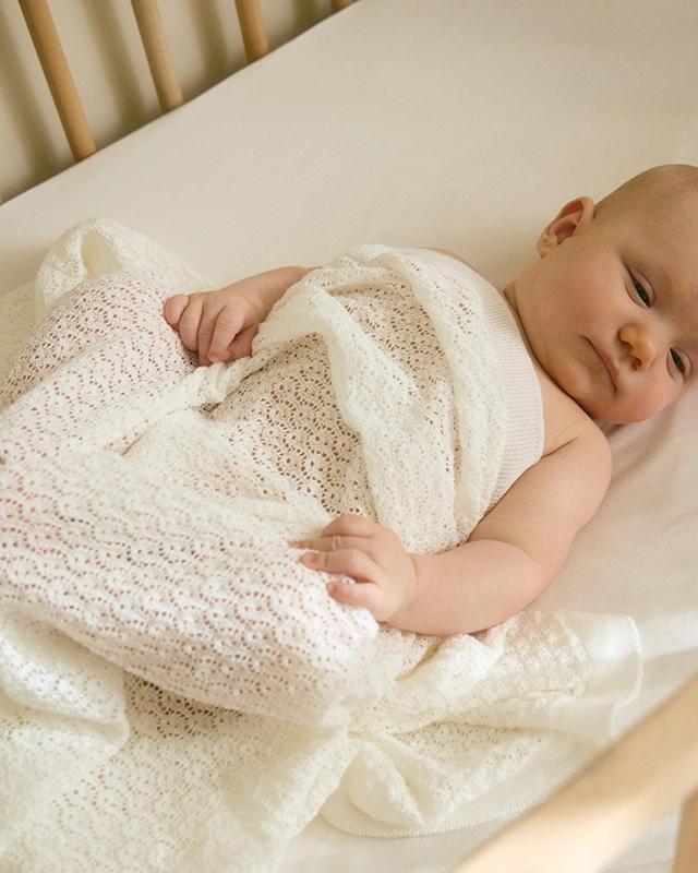 Ажурный плед с первых мгновений кутает новорожденных крох в нежные объятия.