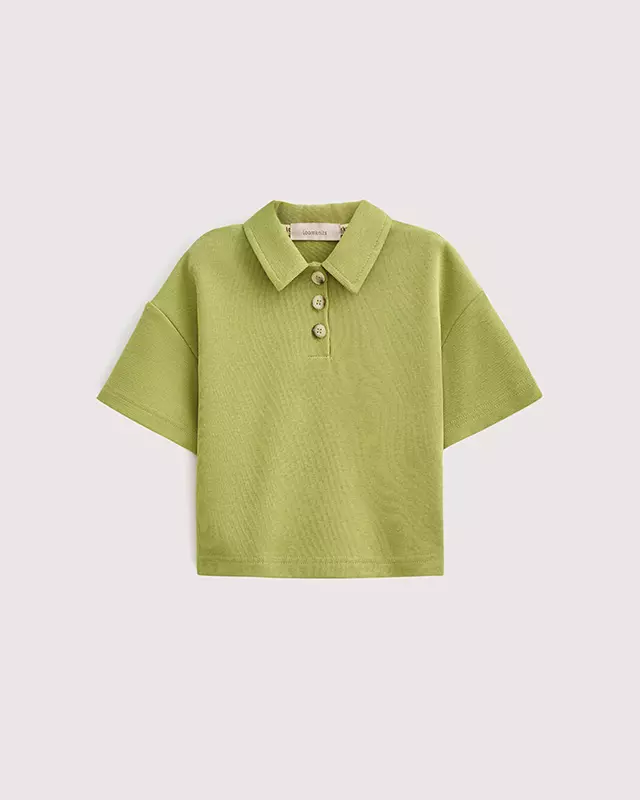 Детское поло, преимущественно выполненное из высококачественного хлопка, с добавлением полиэстера и спандекса. Состав выбран таким образом, чтобы обеспечить вещи высокую износостойкость и упростить уход за ней. Модель свободного кроя, со спущенной линией плеч. Воротник — классический, застегивается на три деревянные пуговицы. В каталоге loomknits поло представлено в двух красивых природных оттенках: травяном и голубом.