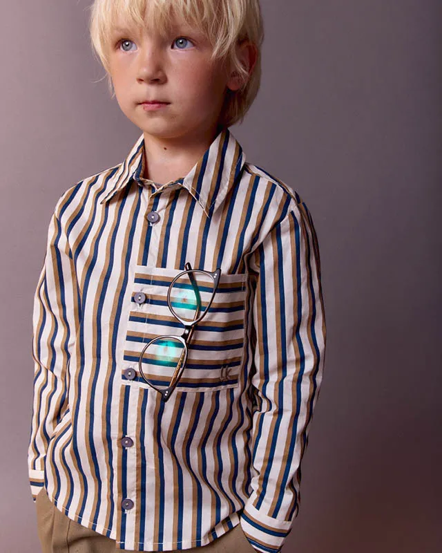 Полосатая хлопковая рубашка с ретро-настроением. Возможно, такая же была у мамы, папы или тети на семейной фотографии.