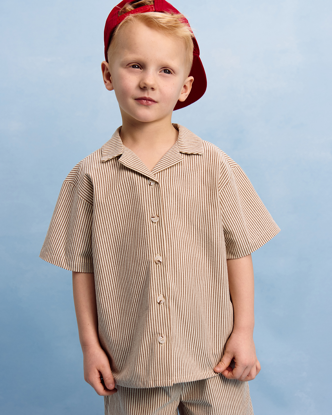 Просторный крой подходит для активных игр и щедрой порции мороженого после дня на море. Натуральная гипоаллергенная ткань быстро сохнет и защищает плечи от солнца в +25 °C.