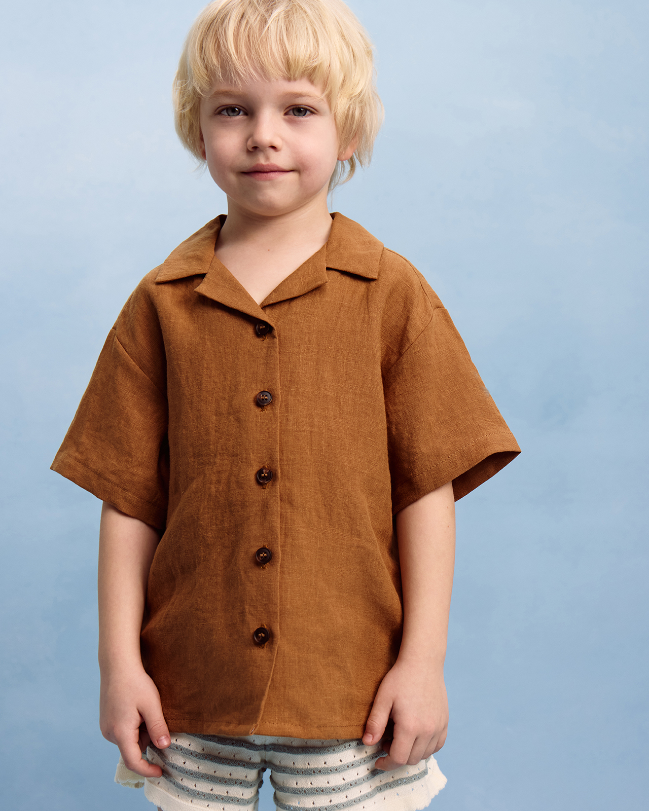 Минималистичная льняная рубашка не отвлекает от самого важного — грандиозных планов на летние каникулы!