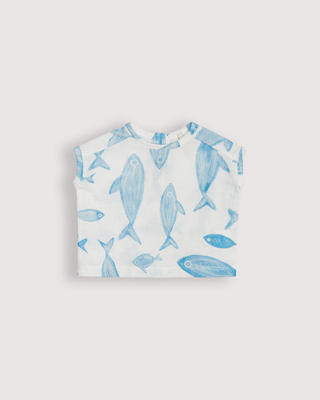 Муслиновая рубашка с морскими рыбками обожает путешествовать.