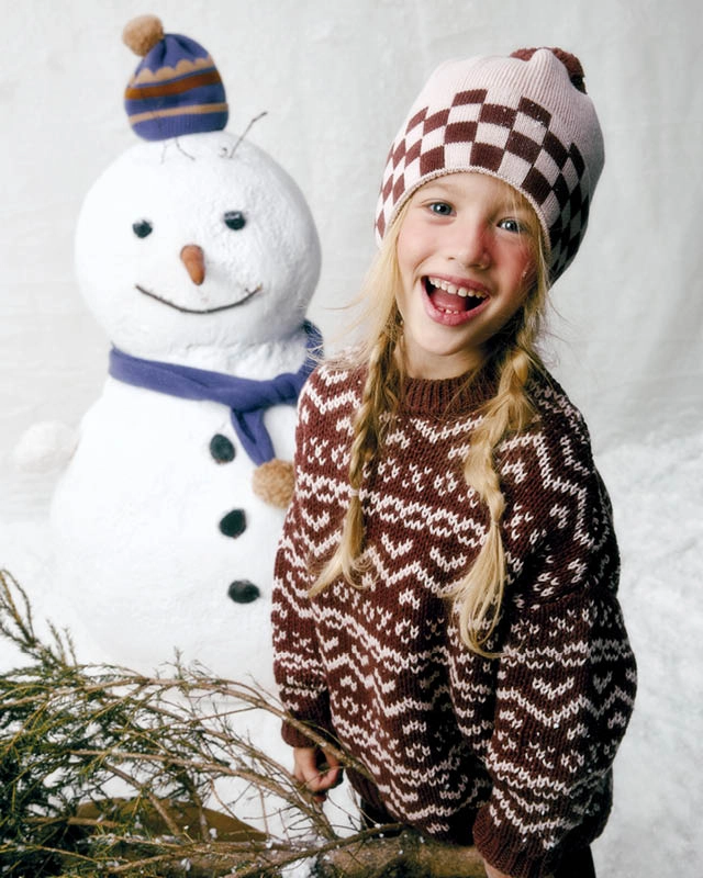 Вязаная шапка-бини с клетчатым принтом для непосед, которые любят гонять на велосипеде по лужам и нарезать круги по детской площадке.