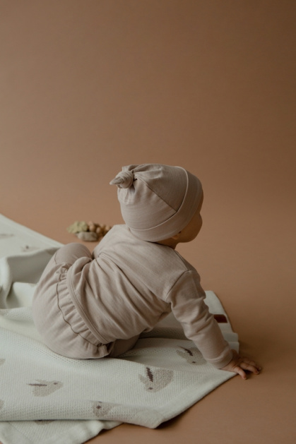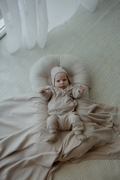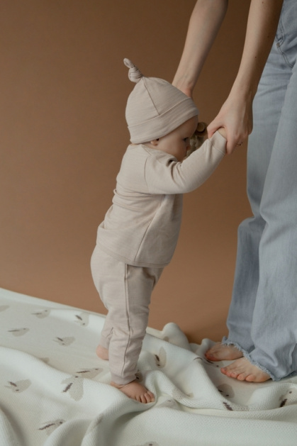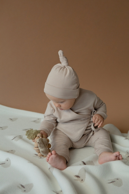 Брюки детские из натурального хлопка и вискозы с жатым эффектом на ткани. Отлично подойдут для теплого времени года. Есть в двух разных цветах: розовом и бежевом. Широкие штанишки с поясом-резинкой свободно сидят и не стесняют малыша в движении. Хорошо сочетаются с любыми футболками и майками, а также свитерами и кардиганами от loomknits.