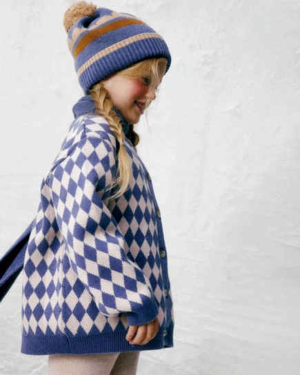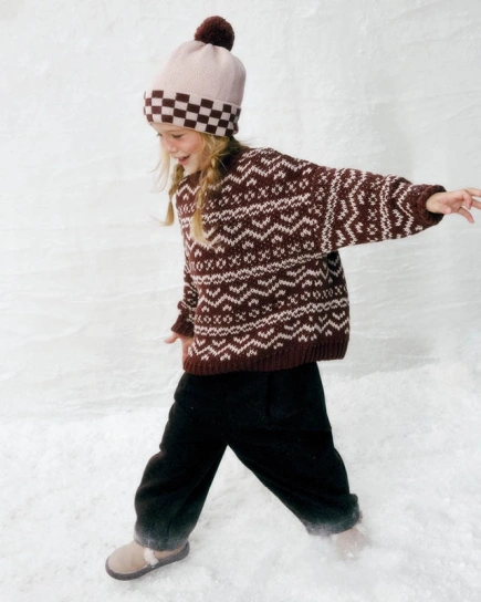 Вязаные леггинсы из смесовой пряжи согреют малышек во время первых прохладных прогулок в +15°C.