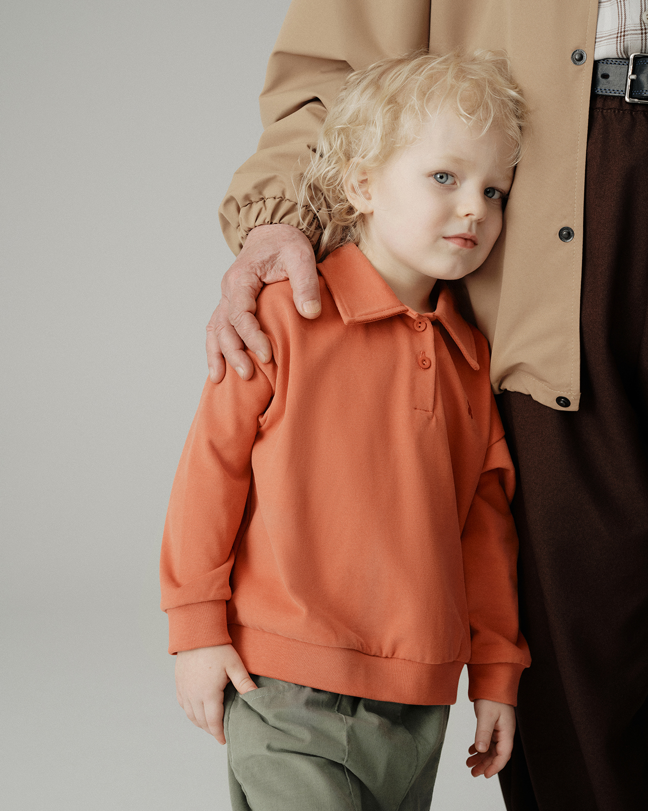 100% гипоаллергенный хлопок с софт-тач эффектом обеспечивает мягкость и приятную тактильность. Эластичная резинка на манжетах и снизу защищает от ветра и холода. Воротник на пуговичках регулирует вырез на горловине и облегчает переодевание.