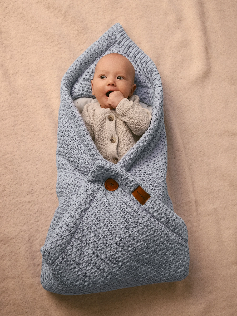 Вязаный конверт — настоящий уголок уюта и тепла для крохи.