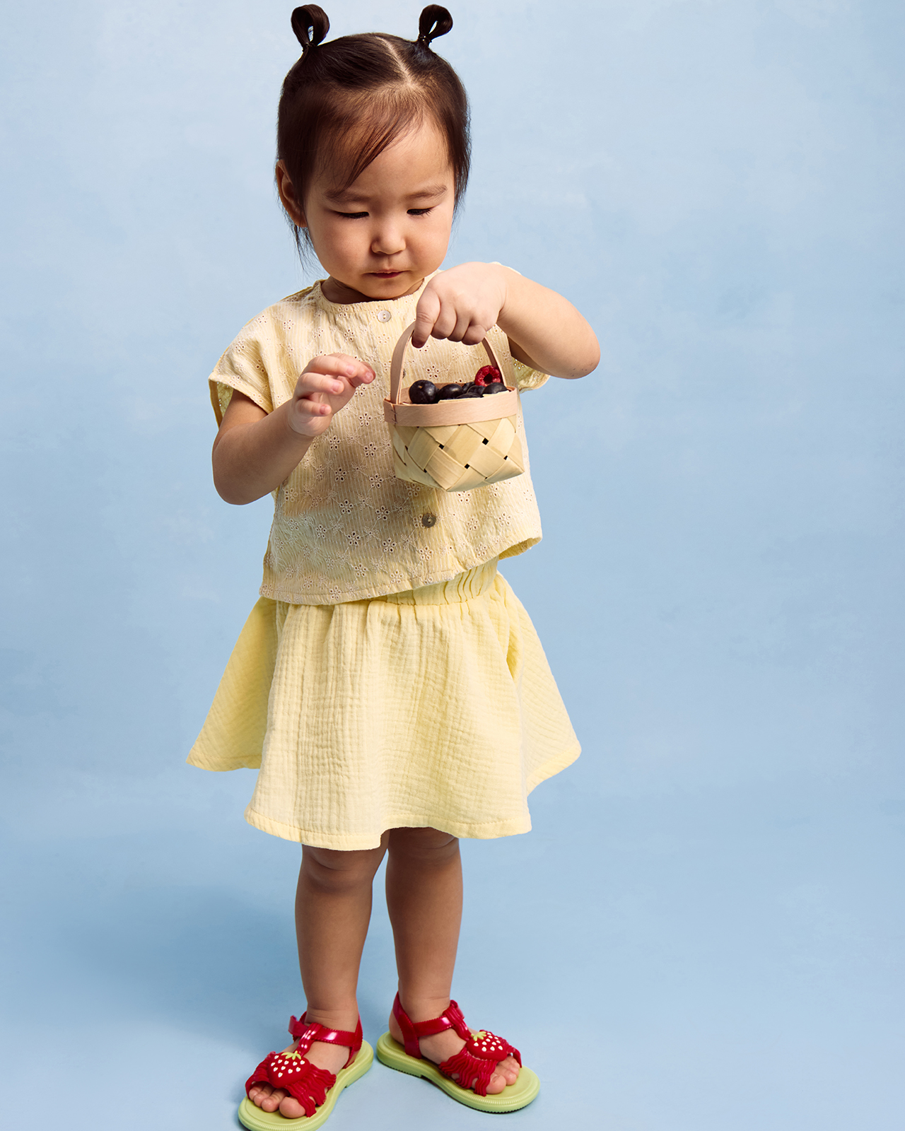 Крой полусолнце и пояс на резинке не стесняют движения во время прогулки и игр на детской площадке. Юбка задорно кружится и напоминает пышный цветочек с клумбы.